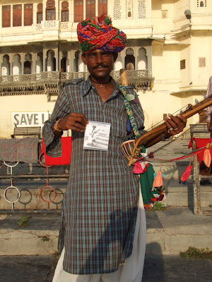 Tambien conocimos a un musico que tocaba un instrumento que el mismo construia (y vendia). No os perdais el ultimo disco de Krishna. El proximo verano es lo unico que se va a escuchar. Uxio le compro una copia por 100 rupias.