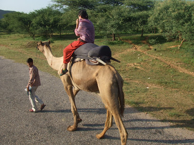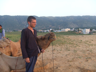 Despues del descansillo, que mejor que un paseo en Camello (vease Dromedario), para ver la bella puesta de sol de Pushkar.