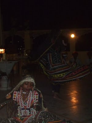 Por la noche cenamos en la terraza del hostal que tenia unas magnificas vistas a la ciudad con el reloj de colores y del fuerte Mehrangar. La velada la amenizaba un grupo de musicos y bailarinas de dudosa profesionalidad que mas que hacer su trabajo jugaban con algunos de los comensales.