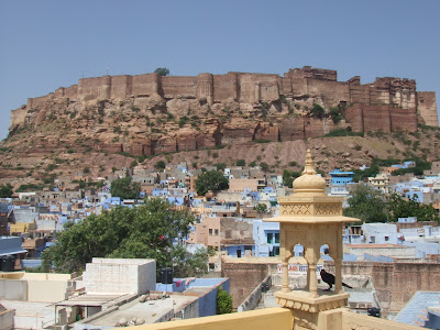 Otras 6 horas de viaje que nos chupamos para llegar a un Jodhpur atestado de coches y reeksaws. El hostal que nos toco esta vez tenia buenas vistas a un "estanque" totalmente lleno de basura que y no olia precisamente bien. Toda la ciudad tenia sistema de desague pero no subterraneo lo que hacia que oliese un poco mal.