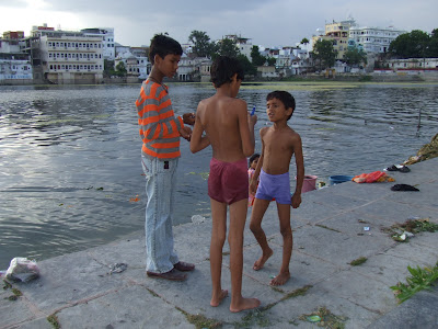 Udaipur es un sitio bastante agradable. Poco trafico, no mucha gente detras tuya dando la paliza. Tiene un lago enorme en medio rodeado de ghats donde se lava la gente y hace ofrendas. Esta vez decidimos no cojer nada que nos ofreciesen en el ghat :)