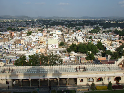 Despues de comer visitamos el Palacio ciudad. Como en muchos otros sitios, meter una camara de fotos suponia un pago extra. Tras reconocer nuestro error en Ranakppur, decidimos pagarlo. El precio de la entrada era 50 rupias, y para meter una camara habia que pagar 200 rupias mas. Un precio abusivo.