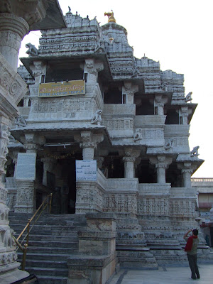 El templo era bastante impresionante tanto por fuera como por dentro. Claro que para meter la camara habia que pagar dinero extra, asi que decidimos no meterla. Eso fue un craso error. Fue de lo mas impresionante que vimos... llevabamos 4 horas metidos en un coche y estabamos cansados y atontados... quiza saquemos fotos en nuestro proximo viaje a Ranakpur... (?)