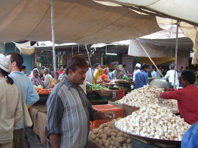 Despues de ver el templo de Brama, nos fuimos a comer por el bazar. Como siempre, unos ninos nos asediaron para que les diesemos algo. Claro que esta vez estabamos preparados. Ahora sabemos decir "Vete a la escuela" en hindu: "TUM SCHOOL YAO". Que es una frase que los neutraliza bastante.