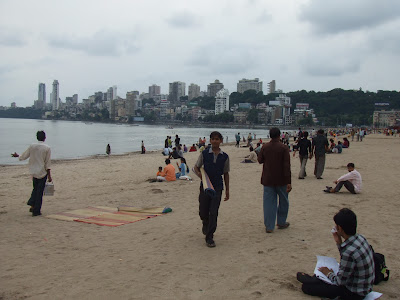 Por la tarde ya en tierra firme nos fuimos a visitar la playa de bombay "chowpatty". Estaban en algun tipo de fiesta local y todo el mundo corria bociferando oraciones con la escultura de elefante de turno en alto a la playa. La gente tiraba basura en bolsas al agua como si tal cosa, creo que no hace falta que describa como estaba la orilla.