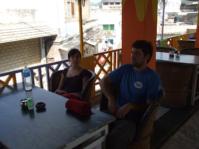 Hartos ya de ver monumentos nos fuimos a comer en el peor restaurante de jodpur donde las pizzas se hacen en una sarten. A Marta le sento bastante mal.