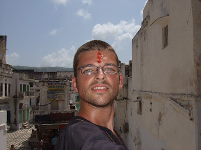 Alli, un monje nos llevo por separado a un ghat, nos pidio que nos descalzasemos y nos hizo una bonita ceremonia tras la que reciviriamos una pulserita y nos harian una pintada roja en la frente.